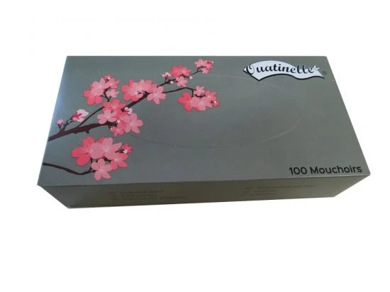 Boîte de mouchoirs blanc lisse en pure ouate de cellulose. Doux et agréable à utiliser.