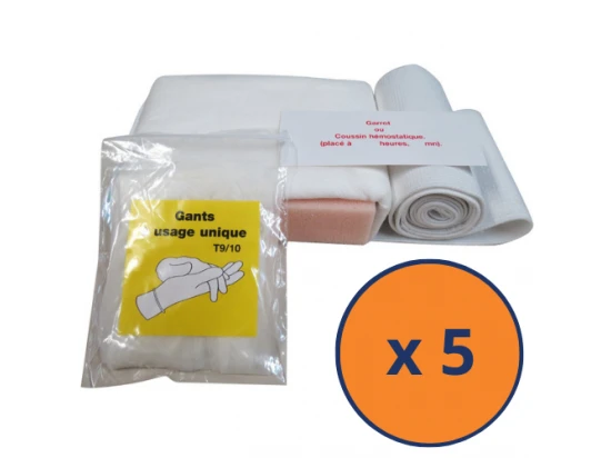 Paire de gants fournies + étiquette de pose du pansement compressif.