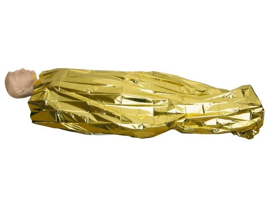 - Le côté Or (ou face dorée) placé vers l’extérieur protège du froid, de l’humidité et des intempéries et permet à l’utilisateur de conserver la chaleur à la température de son corps.