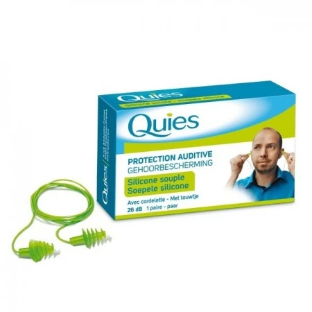 Leur matière en silicone est une texture souple et offre un contact agréable en vous garantissant un grand confort même porte sur une longue durée. La silicone est une matière qui s’adaptera parfaitement à la forme de votre oreille et assurera un maintien irréprochable. Une cordelette relie les bouchons pour éviter de les perdre, mais également pour faciliter leur remplacement. Les protections auditives Quies avec cordon sont particulièrement adaptées aux activités générant du bruit par intermittence. L’atténuation sonore est moyenne, 26 décibels afin de protéger vos oreilles sans vous procurer une sensation d’isolement sonore. Les bouchons d’oreilles Quies conviennent parfaitement aux événements bruyants tels que les concerts, les événements sportifs, ou les petits bricolages… Ils sont réutilisables et conformes aux normes CE.