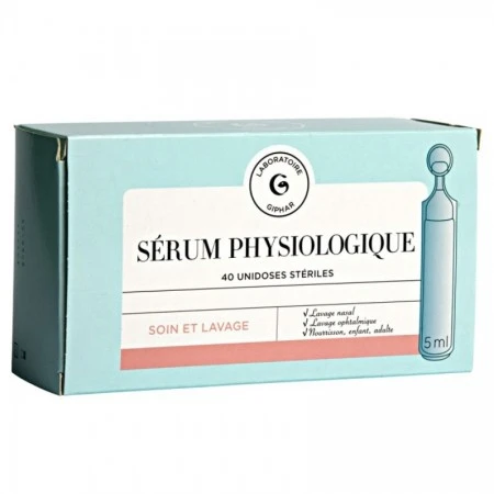 Le Sérum physiologique du Laboratoire Giphar, est traditionnellement utilisé pour le lavage des fosses nasales et l’hygiène oculaire chez le nourrisson, l’enfant et l’adulte.