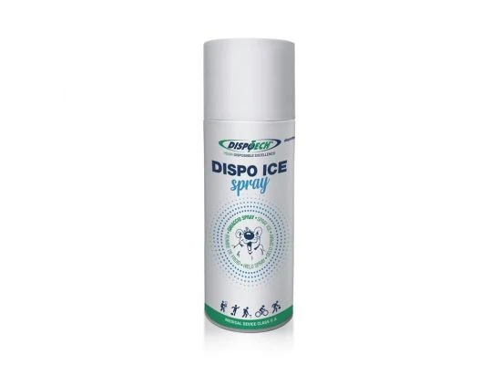 Prêt à l’emploi, l’aérosol de froid DispoTech peut être utilisé comme traitement des douleurs par cryothérapie.